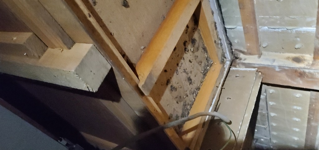 ゴミ置き場の扉の下の隙間からネズミが出入りするとの事で扉下の隙間をアルミ板で隙間を無くして入れないように対策