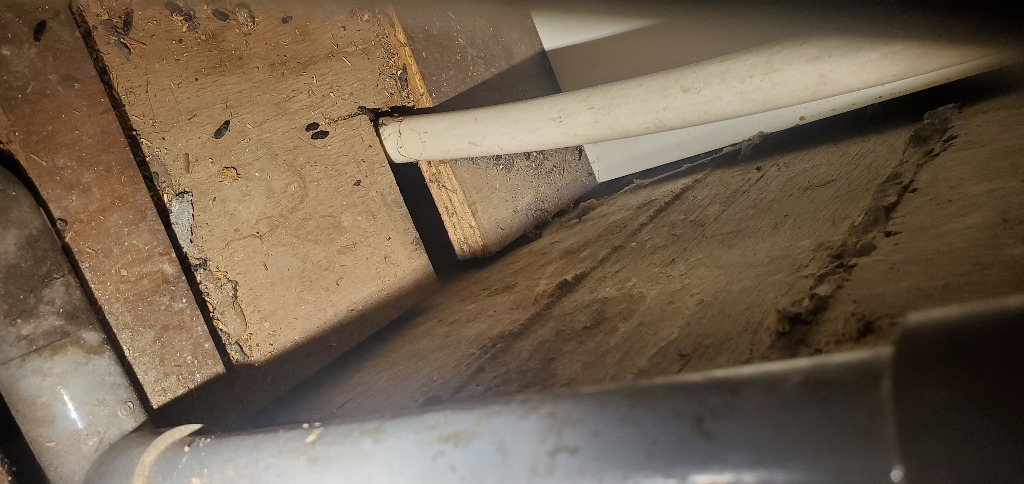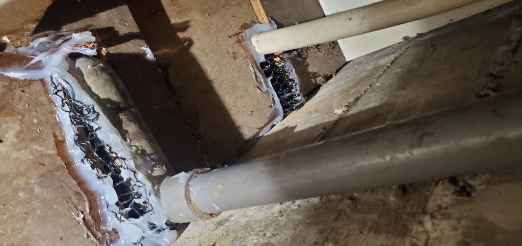 マンション1階のキッチン裏給排水の隙間から室内に侵入してるとの事で内部封鎖